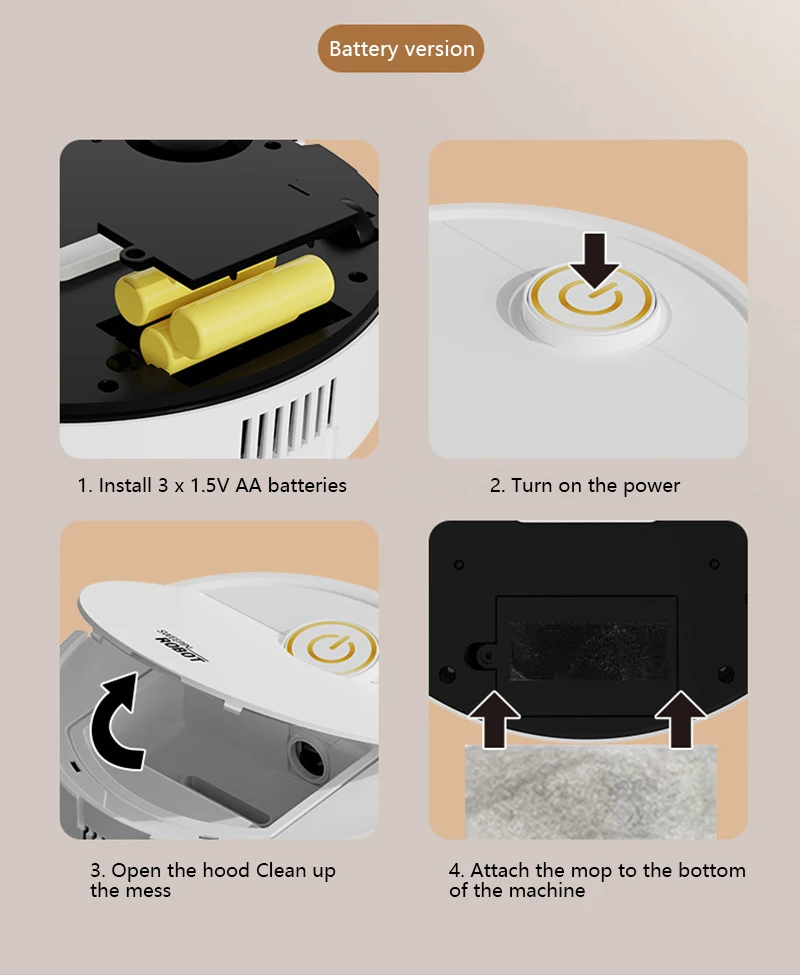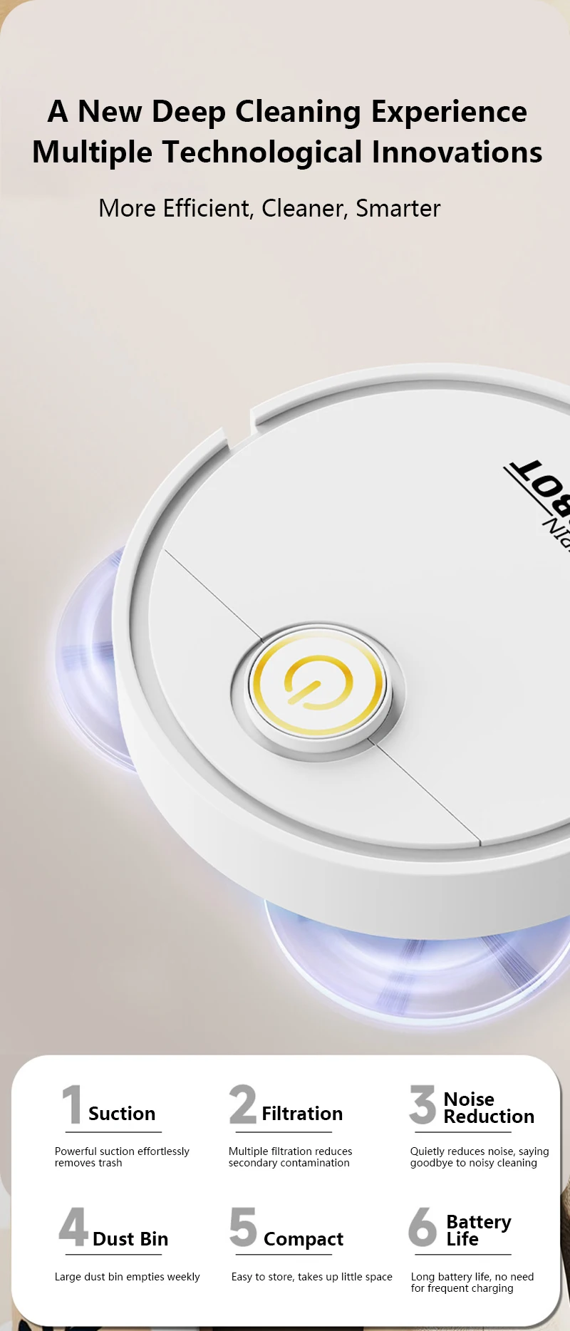 6000Pa Ultra-Strong Suction: Easily picks up dust, crumbs, and stubborn debris.